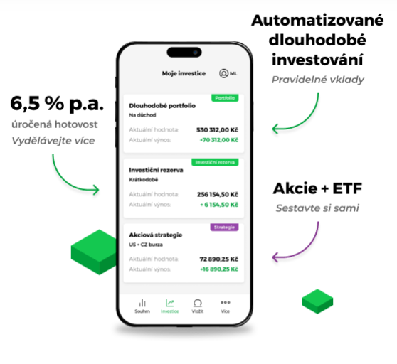 | ✅ Možnost peníze vložit či vybrat kdykoli a bez poplatku |